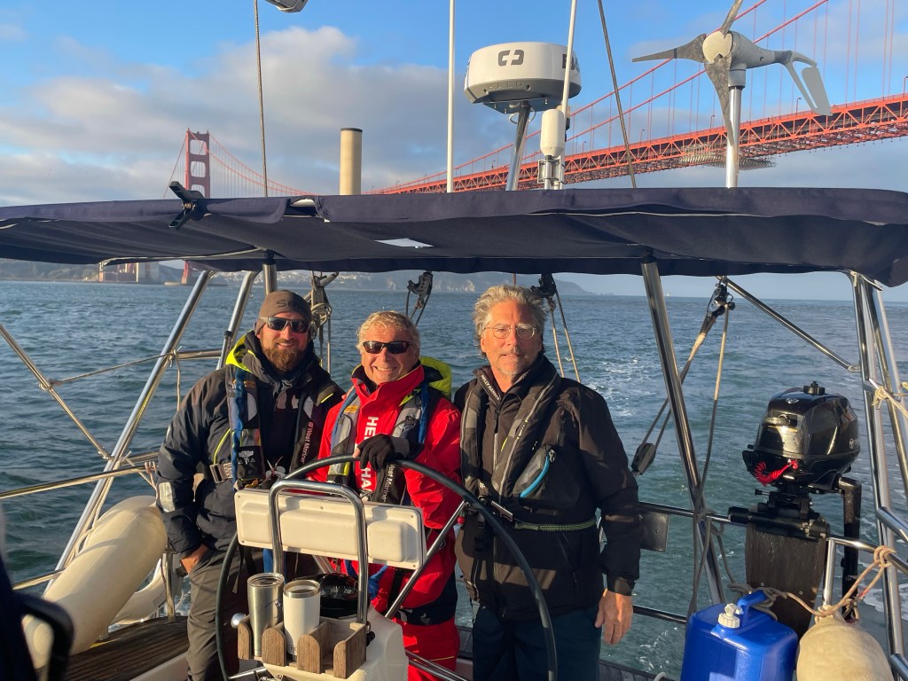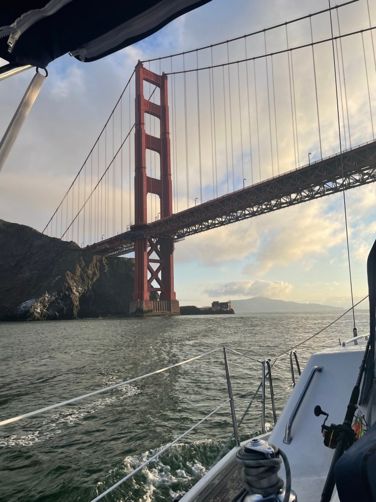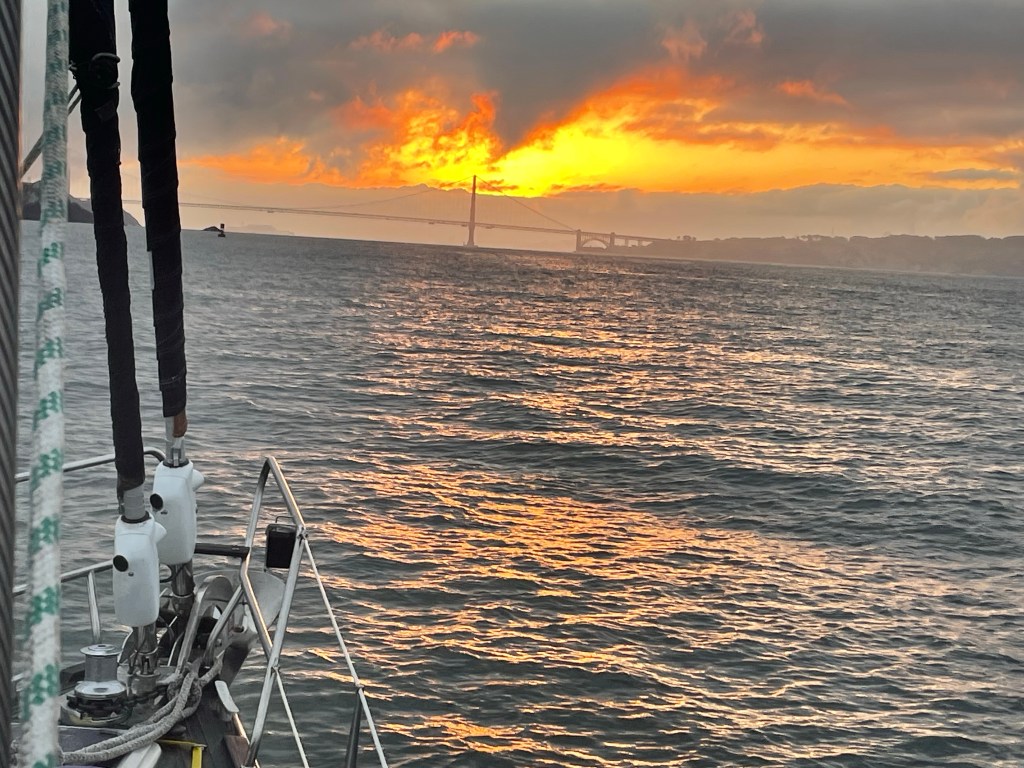 Congratulations on the completion of your 1st leg. Seeing the bridge from afar and then sailing under must have been exhilarating. Take care of your business in Sacramento and get back underway. Love, David and Susan.