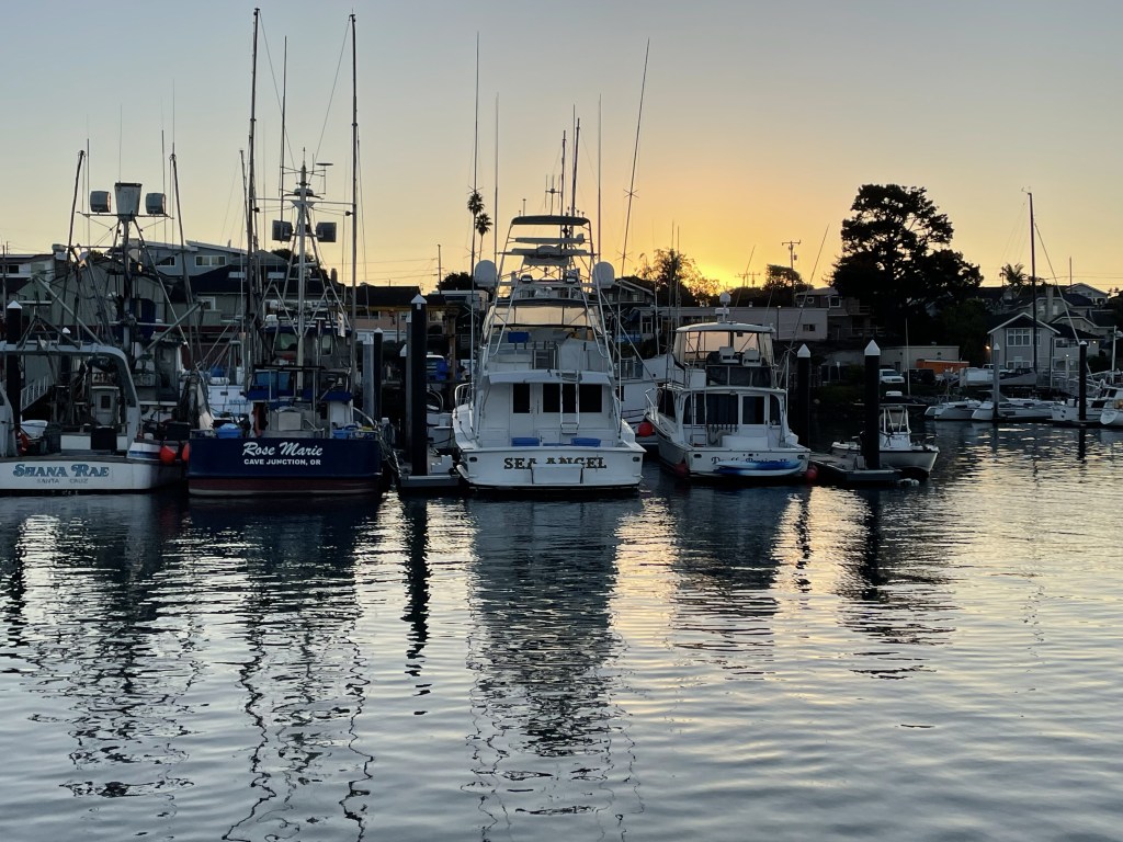 Half Moon Bay was a nice beginning to our California “meandering”. We stayed through dawn Monday morning on our way to Santa Cruz on a somewhat windless day. We now have a functional dinghy, after stowing it coming down the coast from Washington. Given that Tieton is named after the river and near