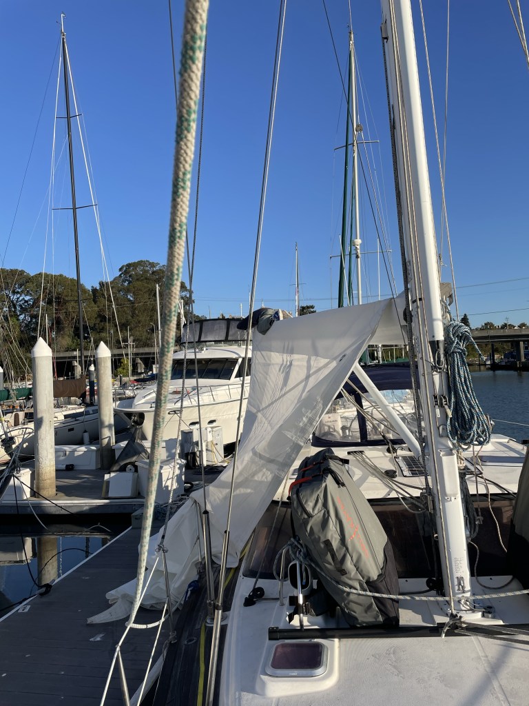 Next we went to Santa Cruz, where the Fantastic Dave at Ullman Sails fixed our main in a day! FYI, when we put the sail up after coming out of San Francisco, it came out of the groove on the mast (operator error) and flailed around until we could get it down, which damaged the batten pockets.