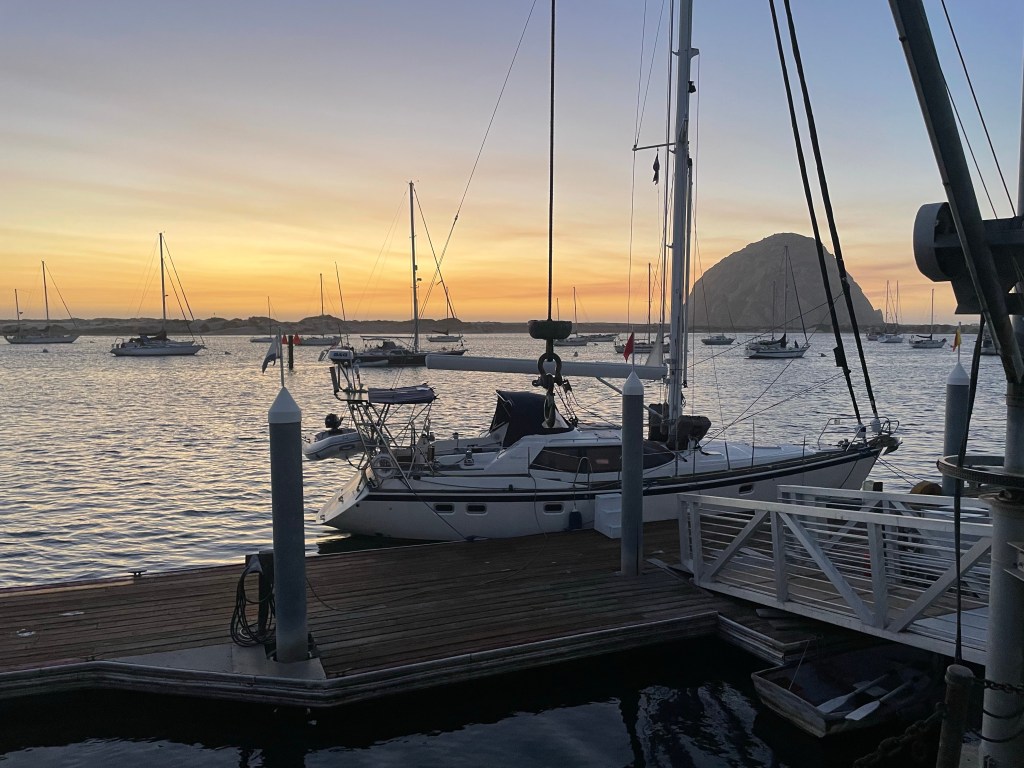 The leg from Monterey to San Simeon was a delightful sail and we were able to almost sail to our anchorage. We’re learning to work better together in somewhat stressful situations like docking and anchoring. Headsets help 😎