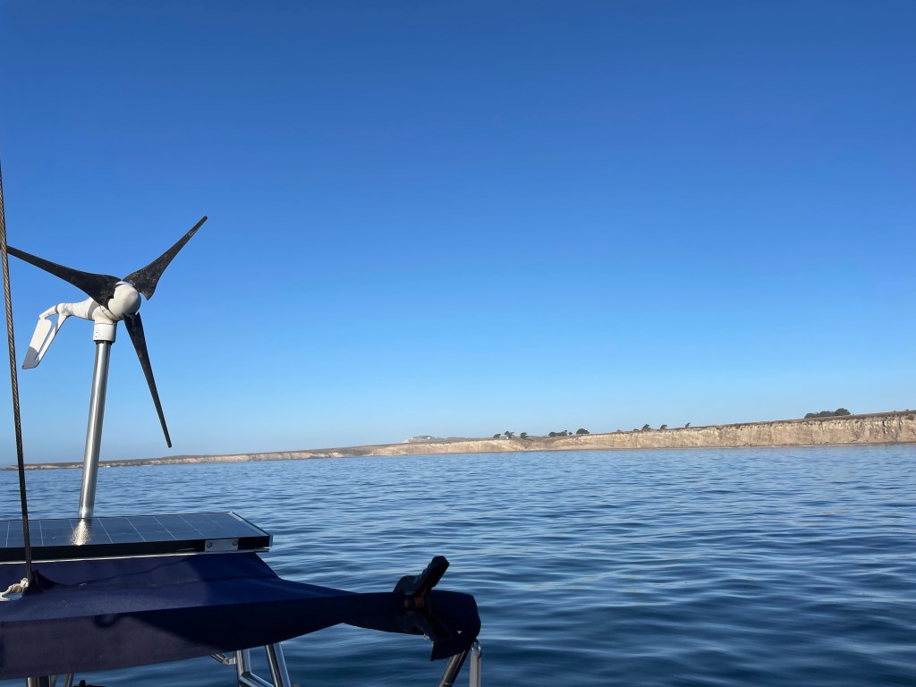The next day, we headed out for a mild 59 NM motor around Point Conception. Other than the fact that we had to motor for nine hours, we were grateful for such an easy trip around the point, with “winds” topping at 3 knots.