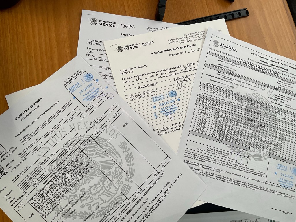 Ensenada is a lovely Mexican city (pop 279,000) with many foreign boats and boaters, and hard working Mexicans helping them. Instead of paying the marina to help us with our paperwork, we decided to do it ourselves, which gave us the opportunity to spend a portion of three days practicing Spanish and learning about Mexican paperwork and culture. Our immigration into the country was easy compared to the boat, which needed the previously prepared temporary import permit (TIP), arrival permission, and departure permission. We learned: