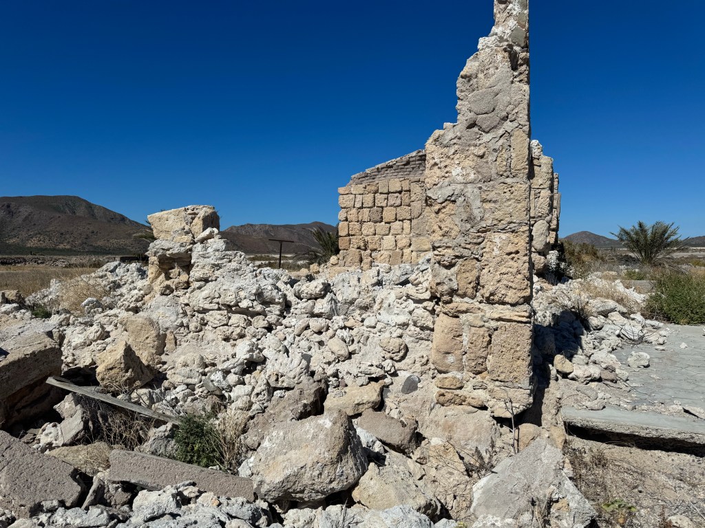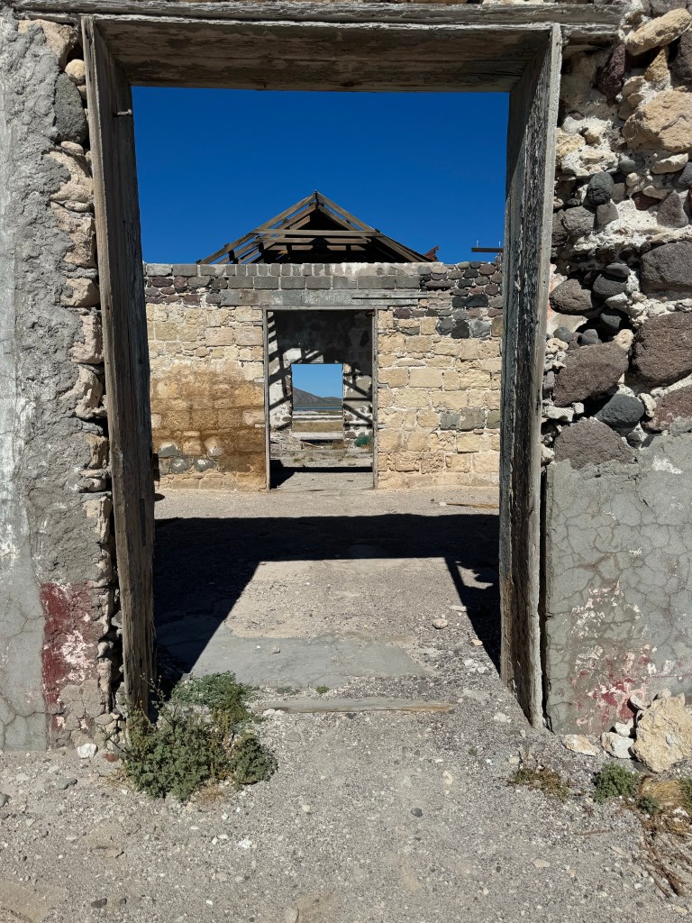 At the head Bahia (Bay) Salinas is the ghost town of a salt mining community that was active for the 200 years before it closed in the 1980s. Although the bay is part of the marine sanctuary, Salinas is privately held and the caretaker watches over the town and the new hunting lodge. Isla Carmen has a population of longhorn sheep that is the base of an effort to reestablish native populations on other islands. The hunting lodge is used a couple times a year by hunters granted permission to cull the older longhorn male sheep. Fortunately, the public is still invited to tour the town, salt pond, and the accompanying church.