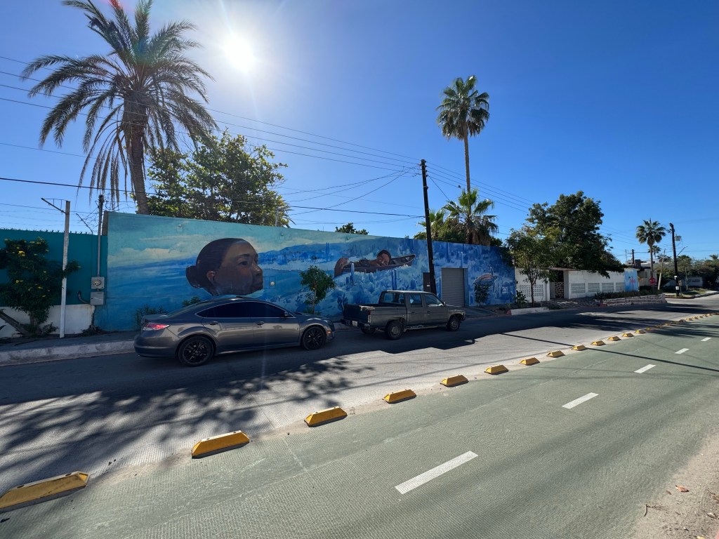 We returned to La Paz to pick up Al at the bus station. Al and Herman have known each other since their twenties, and sometimes they seem to revert, which can be quite amusing. Because tickets to La Paz were so expensive on short notice, he flew to Cabo San Lucas, then took a three hour bus ride to La Paz. While we were waiting, Herman and I enjoyed a beverage along the Malecón on a busy Sunday evening. Sometimes three generations of families were walking, riding, or bicycling together, which is lovely to see. We also got to watch the final quarter of the 49ers win, with exuberant announcers speaking incredibly fast Spanish.