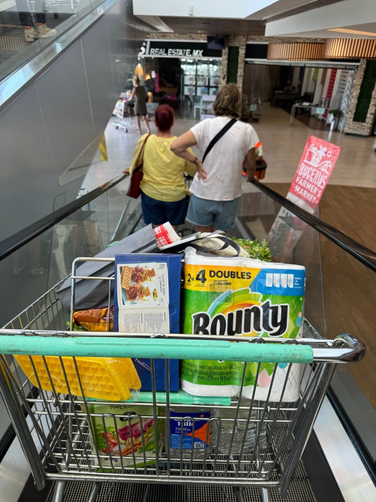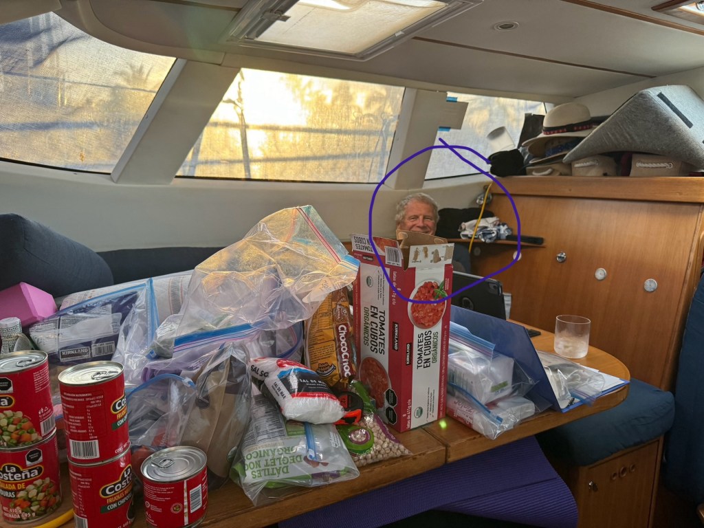 In order to get the generator, we rented a car for 24 hours and the provisioning for our 20-30 day trip tow French Polynesia began. It surprised me that it was so much work. The most difficult part was finding a place on the boat to store everything. Costco and LaComer, which is like an upscale Fred Meyer, seemed almost like shopping in the states, including bunches of US & Canadians. LaComer had an underground parking garage where shoppers pick up carts and proceed to the escalator. The escalator must have some sort of magnet because the cart doesn’t move once there. The most fun shopping was the tiny bulk food store in Bucerías. I was happy to obtain powdered almond and coconut milk to save space on the boat.