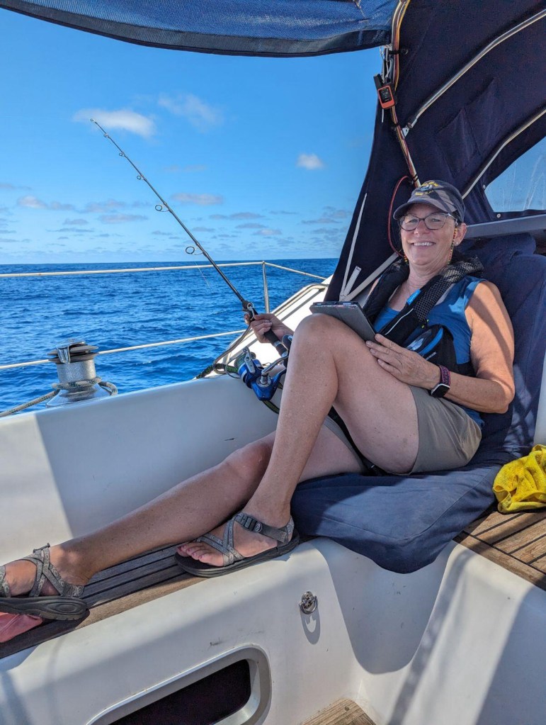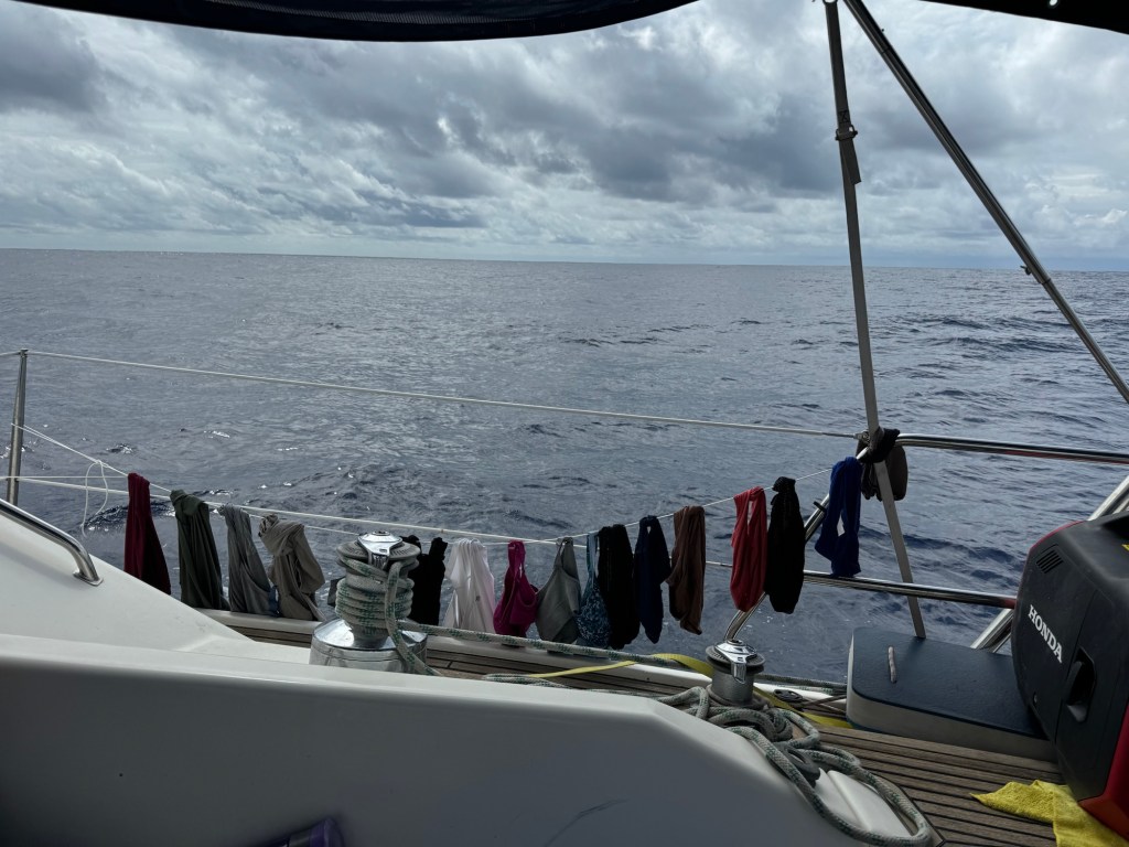 It is difficult to describe the tranquility that comes with a trip like this. Internet access via Starlink is a doubled-edged sword in that its presence takes away the solitude of the ocean. We see other boats on tracking programs and we last saw a light in the distance a few nights ago. Even with that connectivity we still have long stretches of time to contemplate and process. Chores like laundry and taking fish off the deck are part of the fun. Here are some photos of those moments.