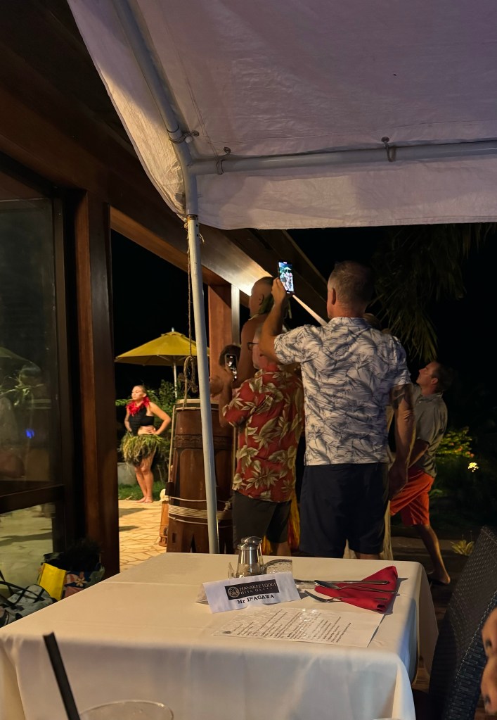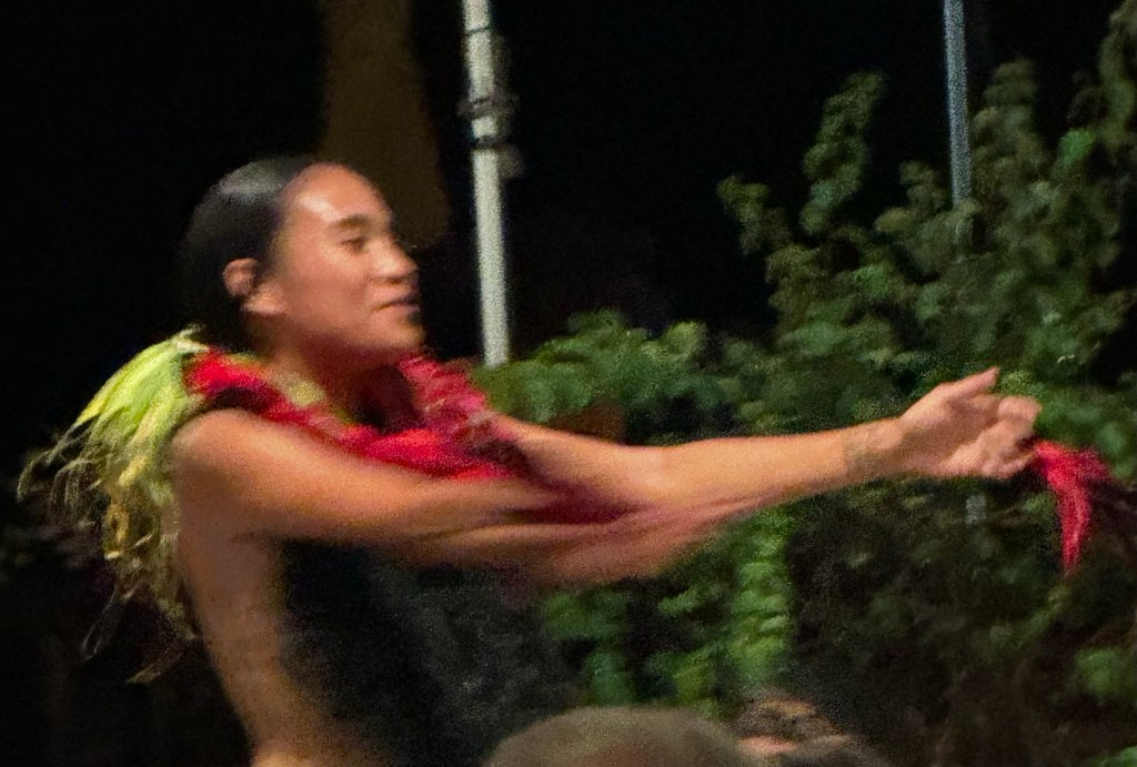We attended a cultural dance at Hanakee Lodge as an opportunity to learn more about the island history. The warriors’ dances displayed their strength prior to battle and celebrated their safe and victorious return. Dances with both females and males related to courtship and fertility. Our experience was a bit marred by a few of our fellow countrymen who thought their video recording and conversations were more important than the show – embarrassing..