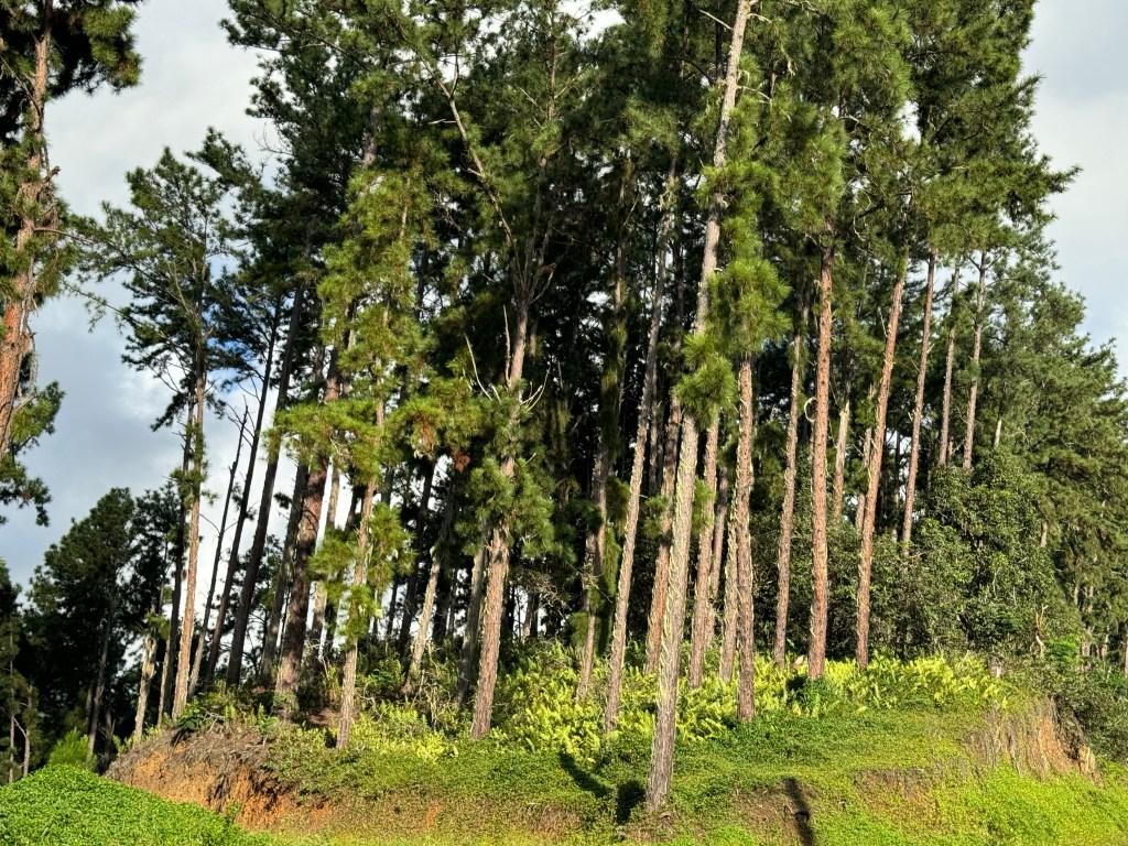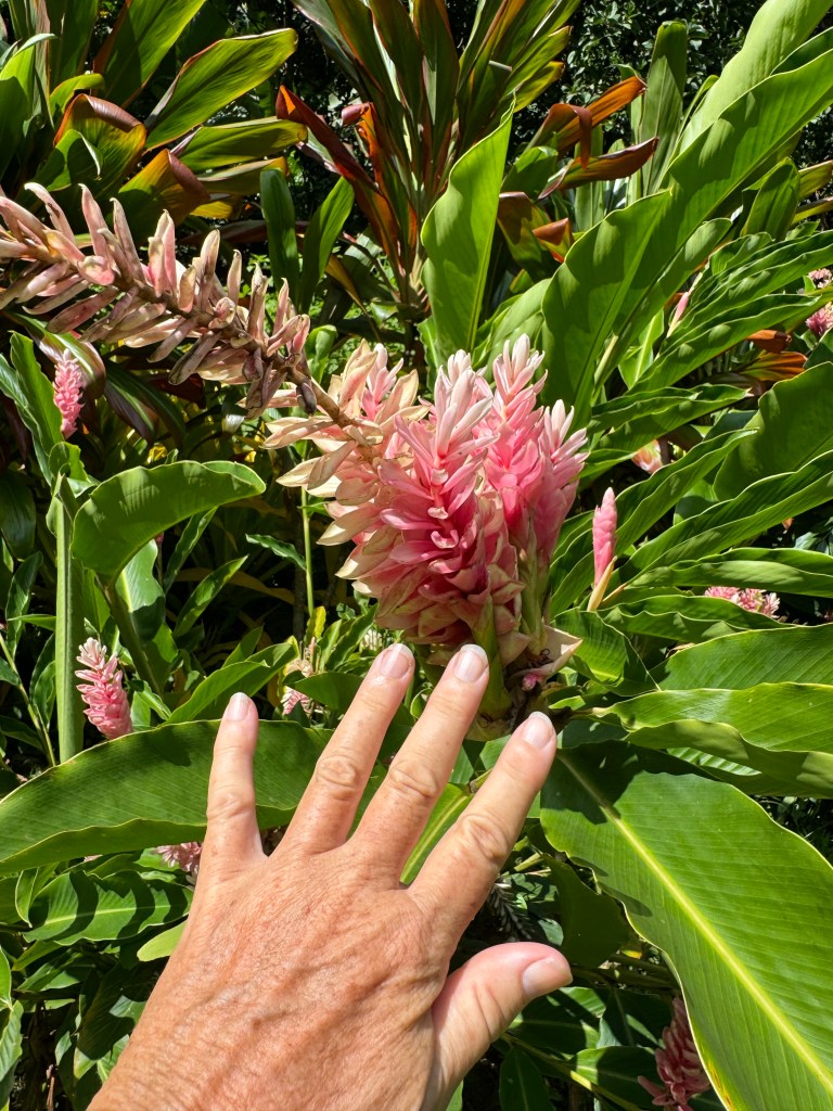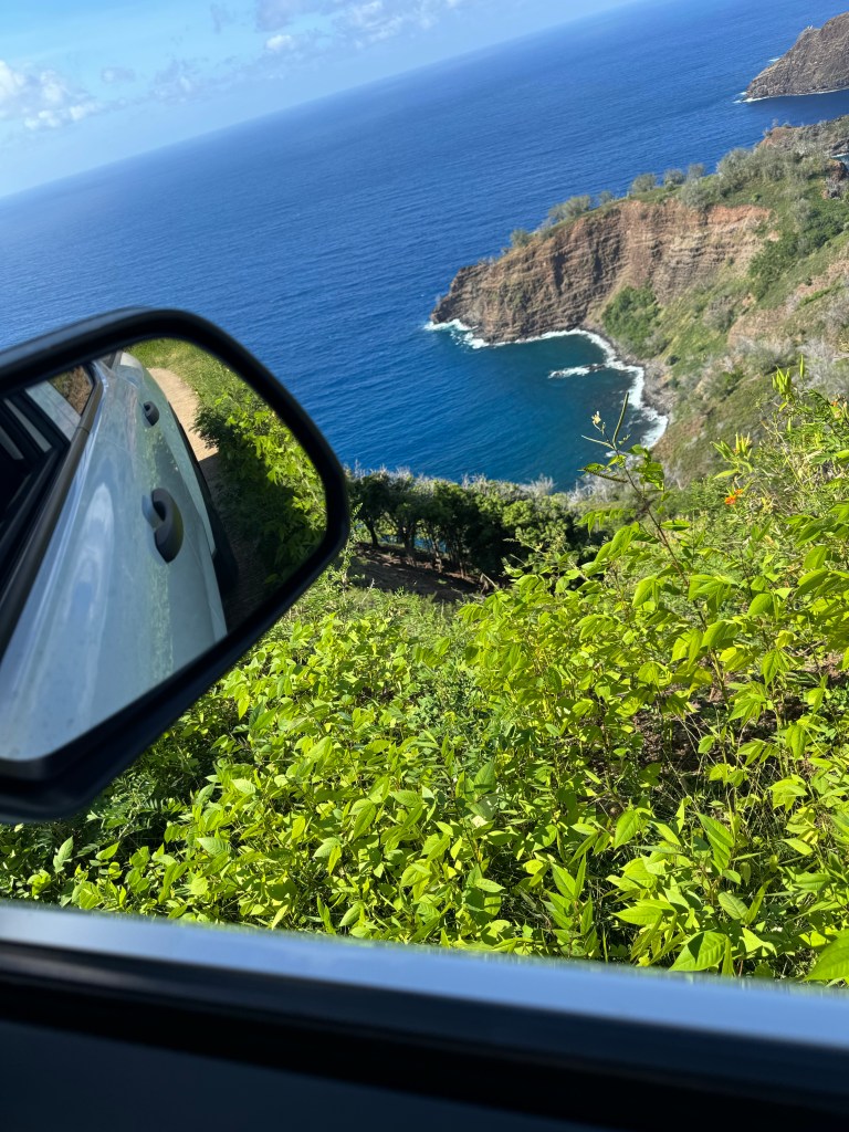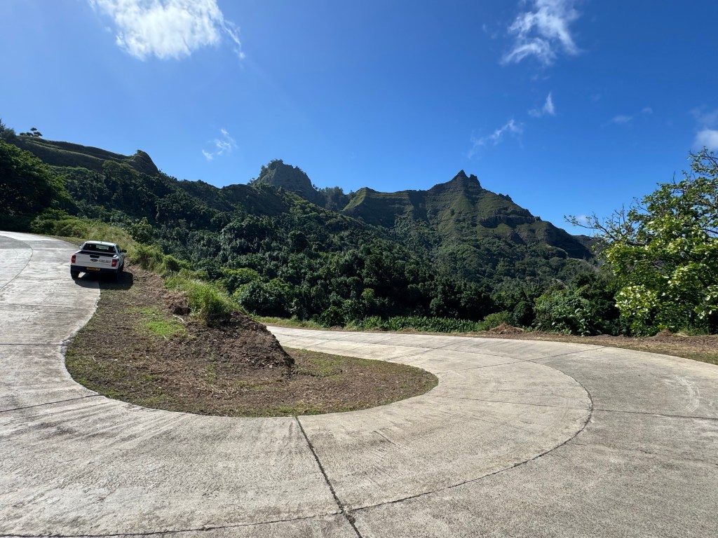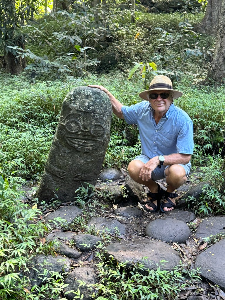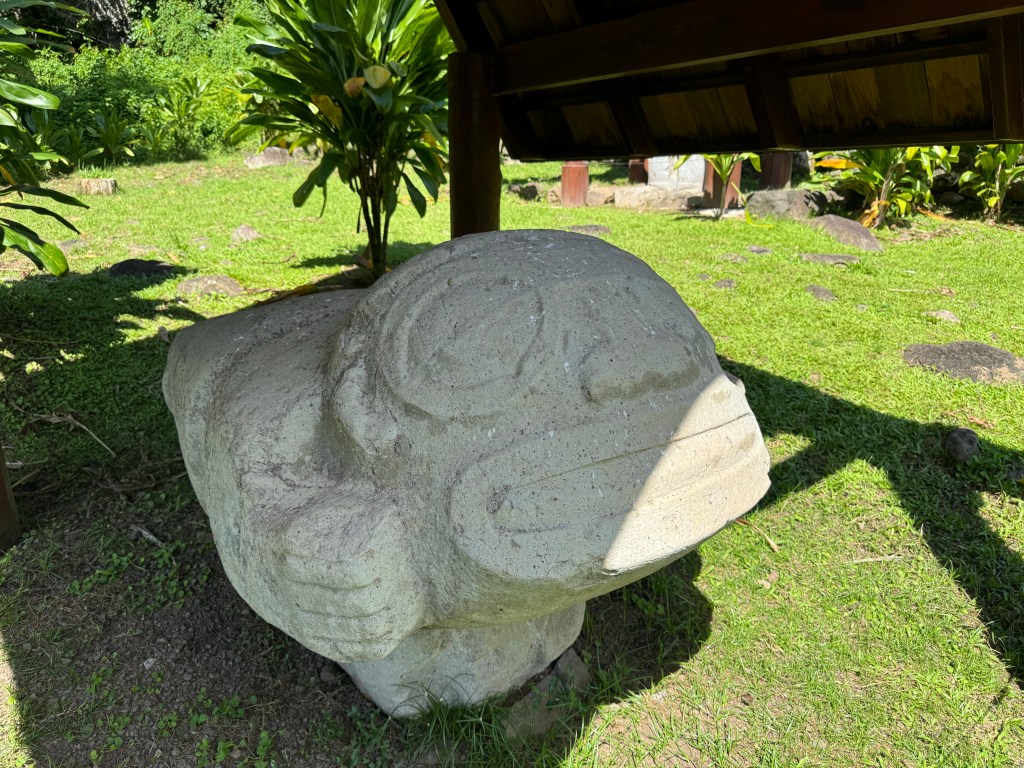 We rented a car for the day so that we could tour the island, see some tikis and other archeological sites, and Herman could refresh his sports car driving skills on the extremely curvy roads. The island has a surprising variety of vegetation starting with coconut trees and fragrant flowers closer to the shore, and then pine trees and ferns at higher elevations.