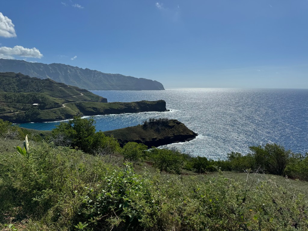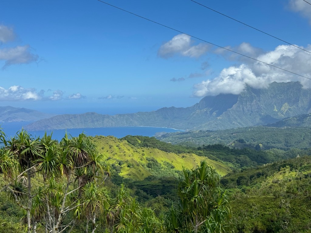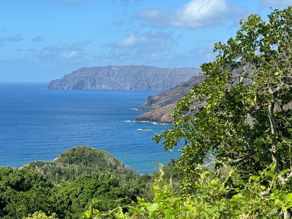 The Marquesas Islands were “discovered” by Europeans in the late 1500’s and became a French protectorate in the 1840’s via treaty. The deep bays and tall mountains reflect the volcanic eruptions that formed them. The rich soils, rain and humidity result in a luscious and diverse landscape, especially on the windward side that receives the bulk of the rain. The valleys in the rain shadows are somewhat barren.