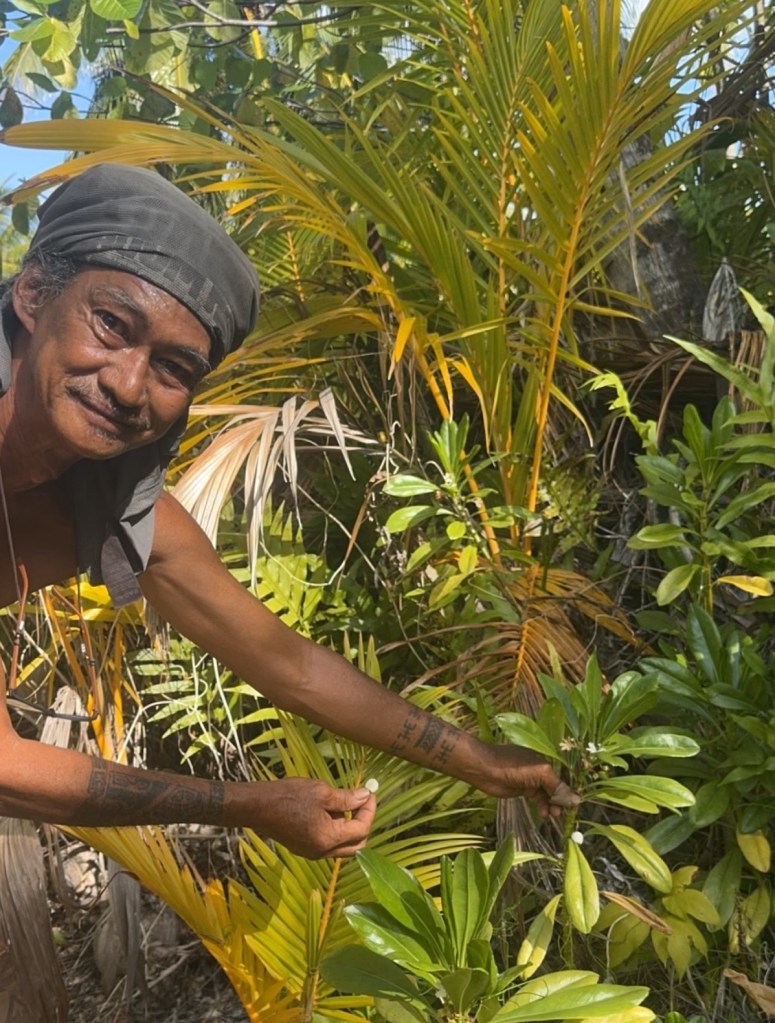 Hina, a local resident for decades, welcomed us onto the beach. We shared a potluck and music, crammed into her humble house, which seemed to sway under our weight. Sweden, Canada, Ireland, New Zealand and the US were represented in the small group. Herman particularly enjoyed the fresh coconut crab in coconut milk, all harvested that day.