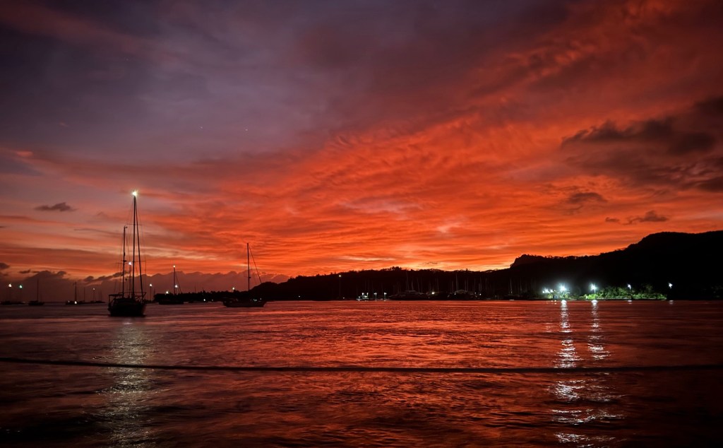 We are so grateful to have ended our awesome time in French Polynesia with Maupihaa. We had to drag our anchor through the water to remove the fine white sand clinging to it – kind of like our hearts. We may eventually return on our way back to the Pacific Northwest 🙂