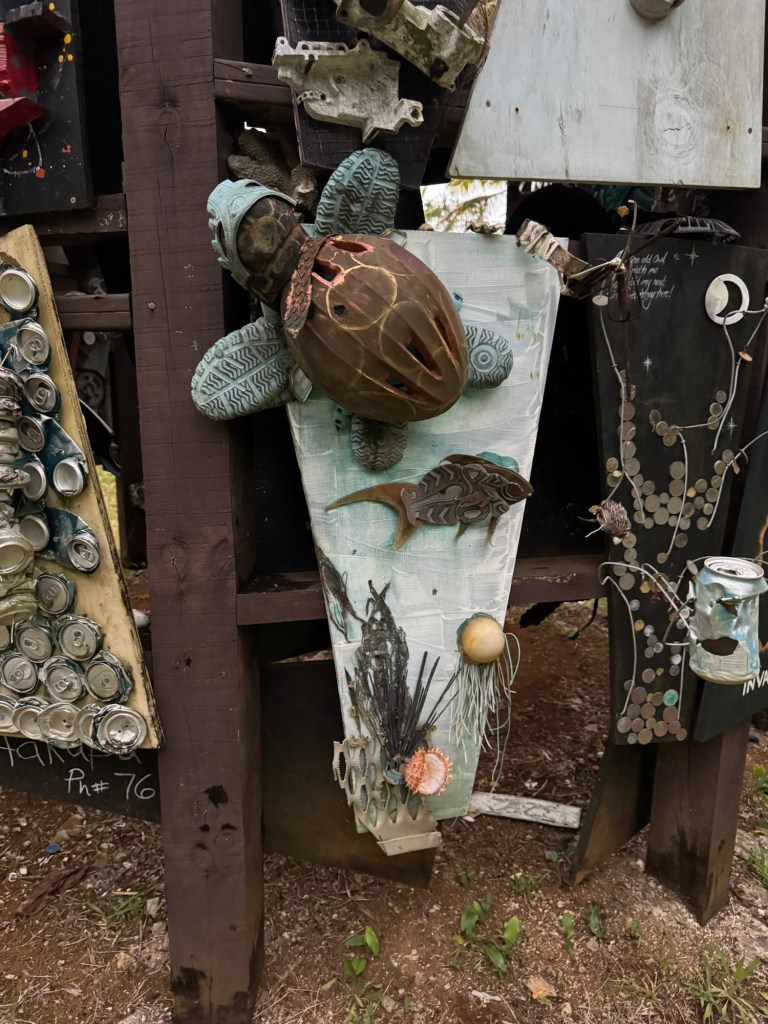 On a lighter note was his tribute to a Niuean art teacher. The turtle made out of crocs and a bicycle helmet was one of my favorites.