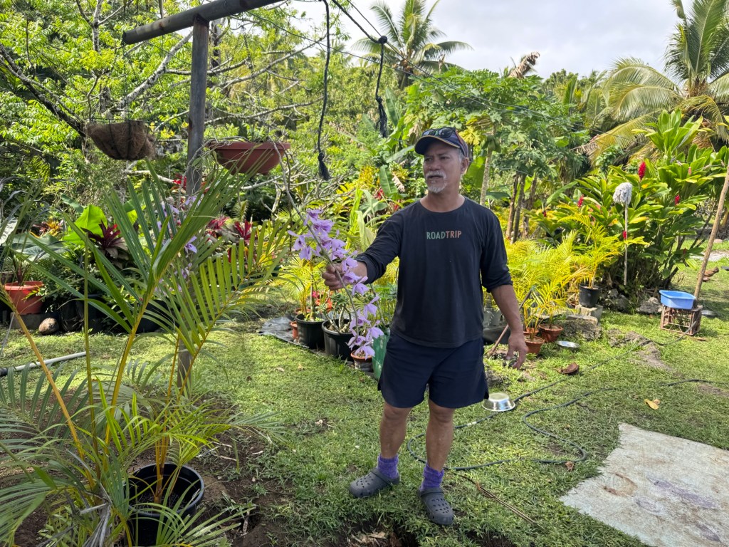 How are these related? Hina and Feti saw a need for laundry service for Niue visitors, so they started a laundry business and they obviously enjoy interacting with clients. When we picked up our laundry Feti invited us to sign the guestbook and have some coffee. Over coffee, toast, peanut butter, and strawberry jam, Feti told us about their business, and proudly bragged about his wife’s garden, flower arranging and artwork. Before we left, along with our laundry, he gave us a papaya and picked some limes for us. So much more than laundry 🙂