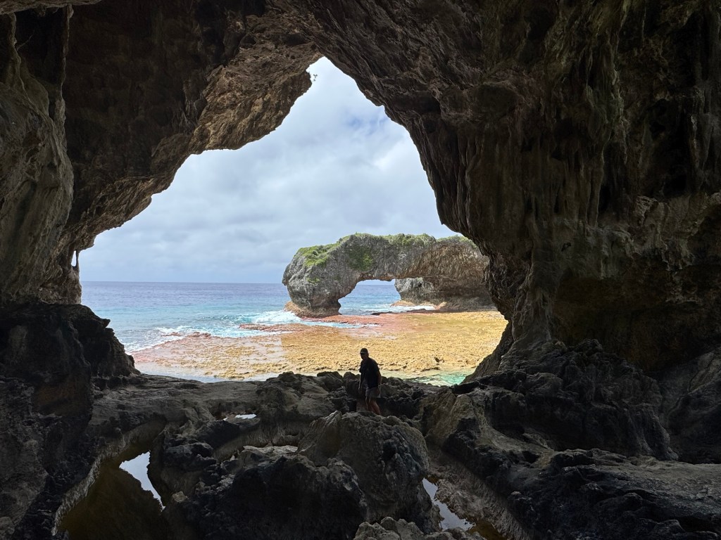 The Talava Arches were featured on Niue’s postage stamp and are a must see for visitors. At the north end of the island, they’ve experienced millennia of waves washing over and through them. After a walk through forest covered coral, we scrambled through the covered rocks to arrives at the reef and stunning arches. It isn’t surprising that the first settlers used the arches as a lookout.