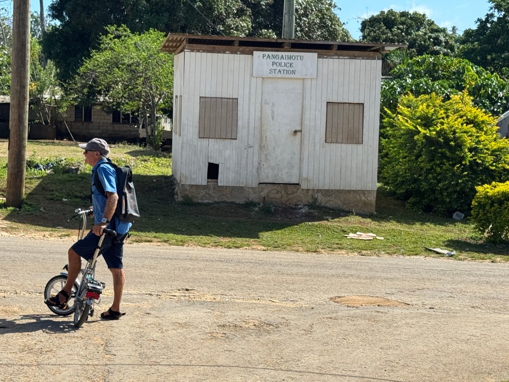 On Monday, Herman and I took our bikes into town to get a few provisions and start the process to check out of Tonga. Those directions might have been: beach the dinghy in the cove with the cows standing by the water, walk up the hill with the bikes, bicycle past the fields, then take a right at the “police station”. We took a left and got a scenic tour of a peninsula, before we realized my navigation error and turned around towards Neiafu.