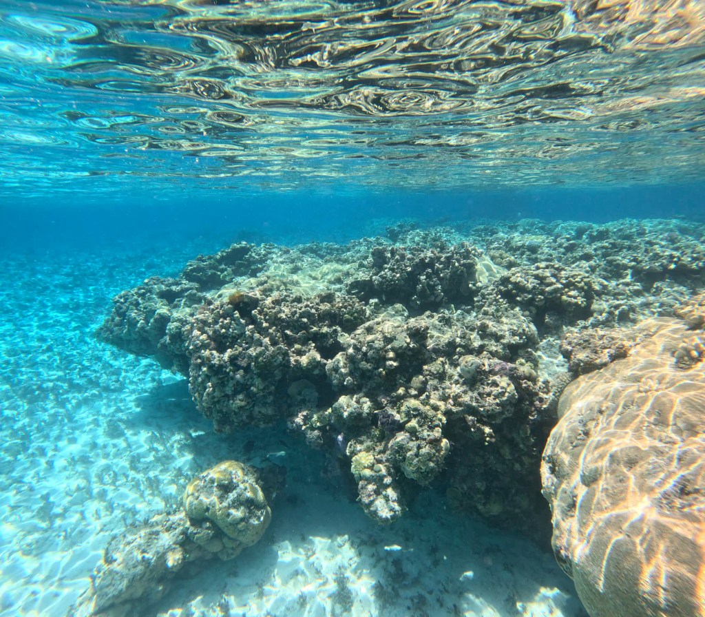 We snorkeled inside the reef with beautiful live coral and plenty of fish. The crystal clear water within the protected reef made for an easy float.
