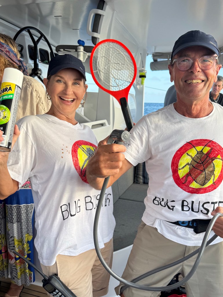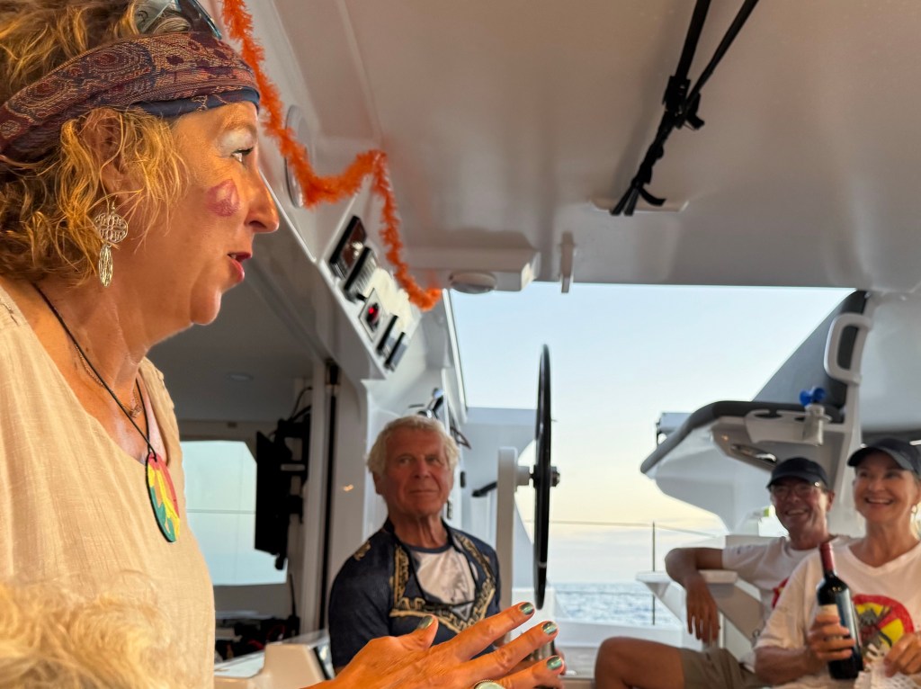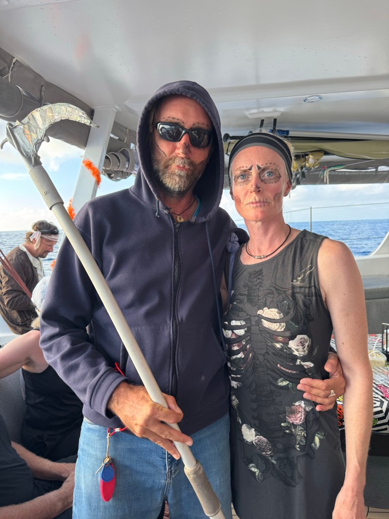 Norhi and Larry, who we met in Tahiti, invited the boats in the anchorage for the “Halloween Party of the Century” on their catamaran SV Norhi. Several clever cruisers cobbled together nautically-themed costumes, some of which related to the New Zealand biosecurity that is top of mind for all of us.