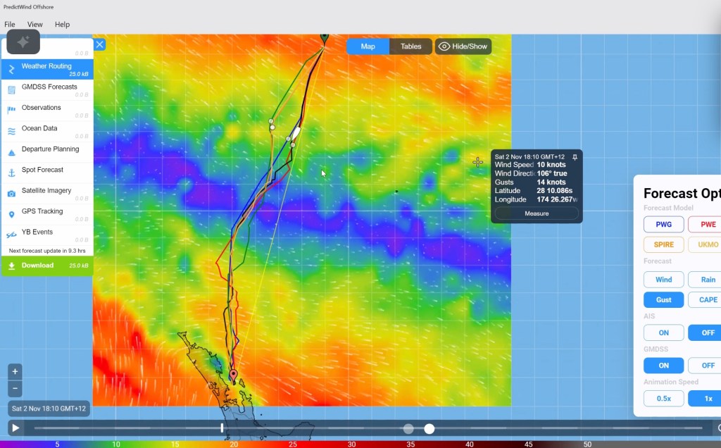 Our freezer is restocked with passage meals and we’re ready to tackle the remaining 800 miles to Opua, New Zealand, which should take five or six days. Crossing yet another convergence zone, we expect a mix of sporty and smooth conditions.