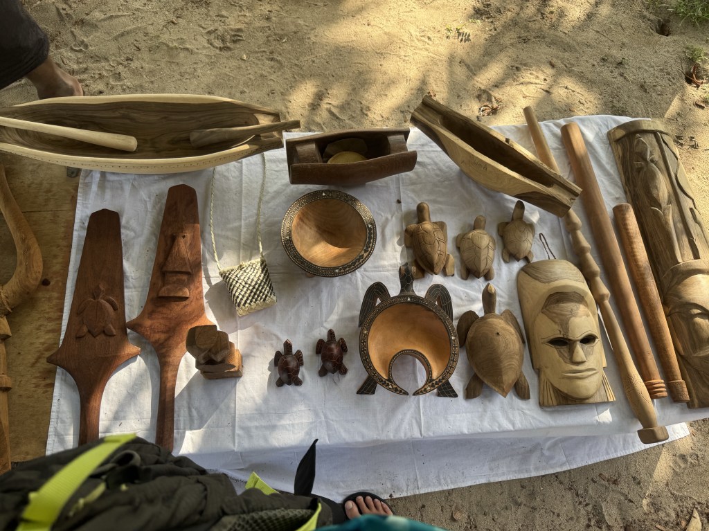After assuring that Tieton was well anchored, we donned our sulus, proceeded ashore and walked into town with our kava. As we approached the village, we removed our hats, sunglasses and backpacks, which can be seen as offensive. Seta was the first villager we encountered and he greeted with a boisterous “Bula! Bula!” (Hello! Welcome!). He told us he’d show us the visi wood carving shops, for which the island is known, and then take us to the chief. Along the way, he told Bill to pick some coconuts, which Bill later served us when he was assigned as our host family.