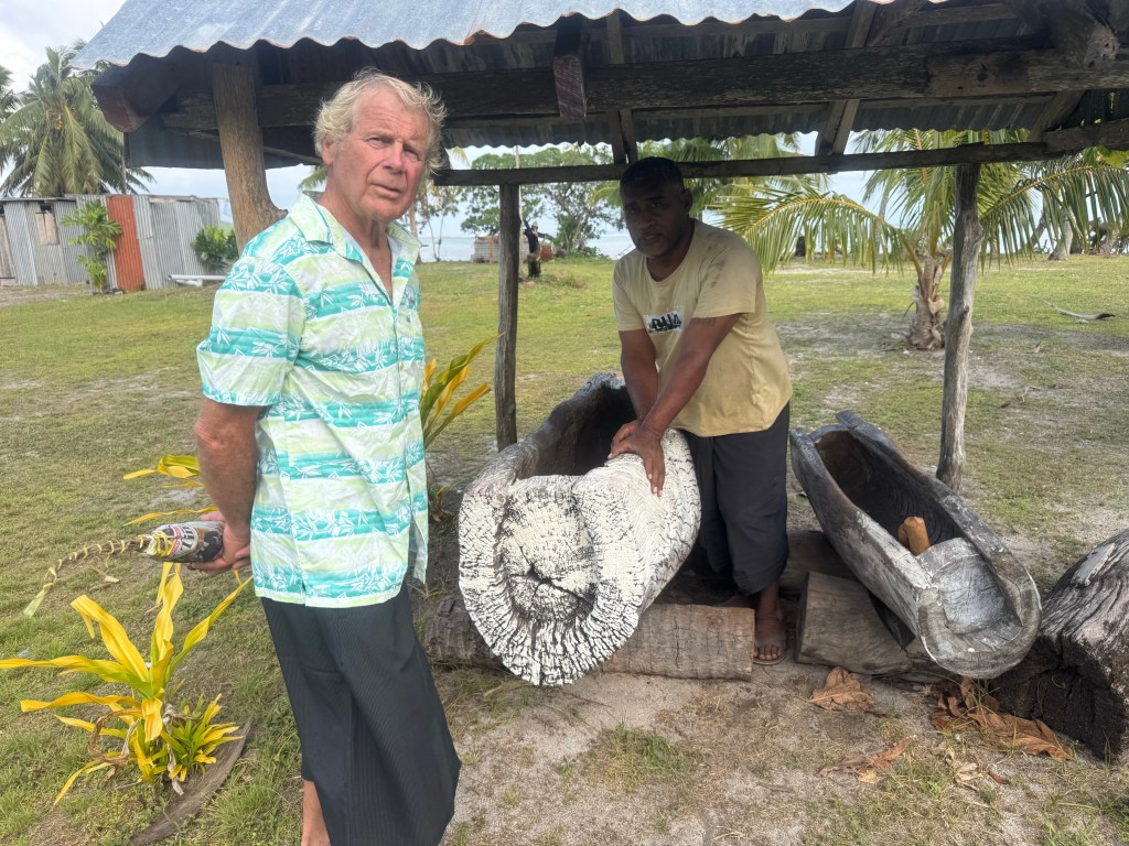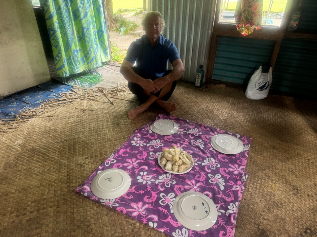 By ancient tradition, visitors are expected to bring a gift of kava to present to the village chief. It is a sign that we come in peace and will be respectful of their property, which includes the land, lagoon, surrounding reef, and all the water, plants and animals within it. Upon our arrival at the chief’s house, Seta chanted to the chief and then beckoned us inside. After removing our shoes, we proceeded inside and sat on the mat in front of the chief. Men sit cross legged with sulus covering their knees and women sit with their knees to the side.