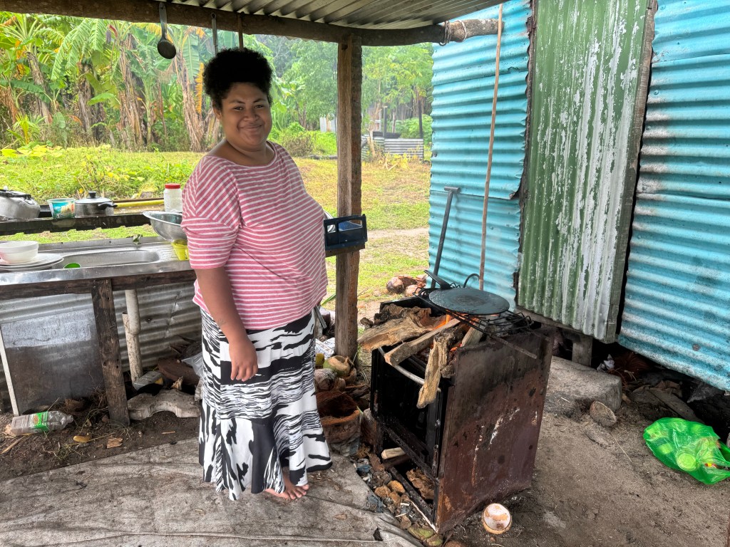 After our hike with Bill the next day, Amelia prepared what she called scones, made in a sheet pan with fresh squeezed coconut milk, lemon juice, sugar, and flour. She baked the cake next door in her grandparents’ oven, for which they were rewarded with a couple pieces. We ate our share and when we were done, three schoolboys on their lunch break wandered by and were happy to have leftovers.
