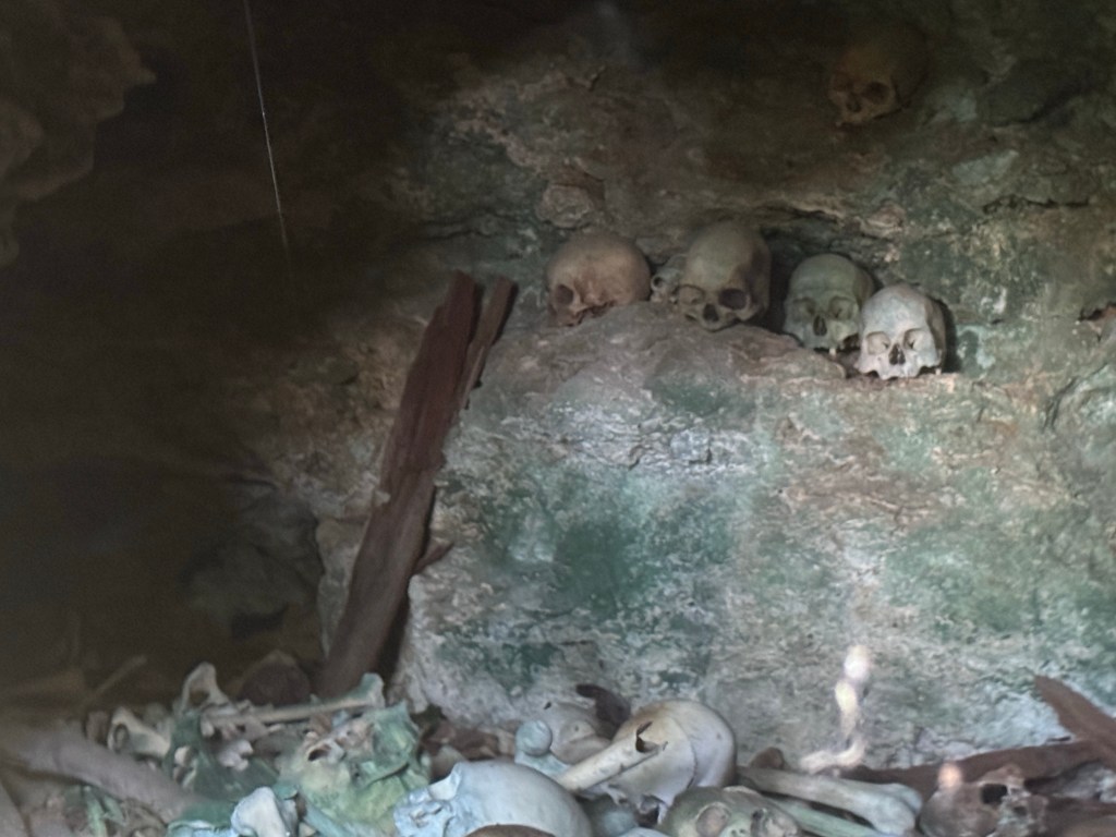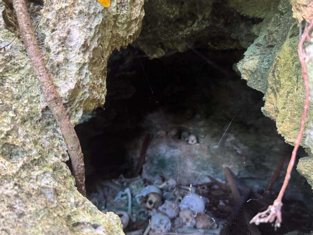 When the villagers moved closer to the shore, the bones from their deceased ancestors were left in the cave where they remain today.