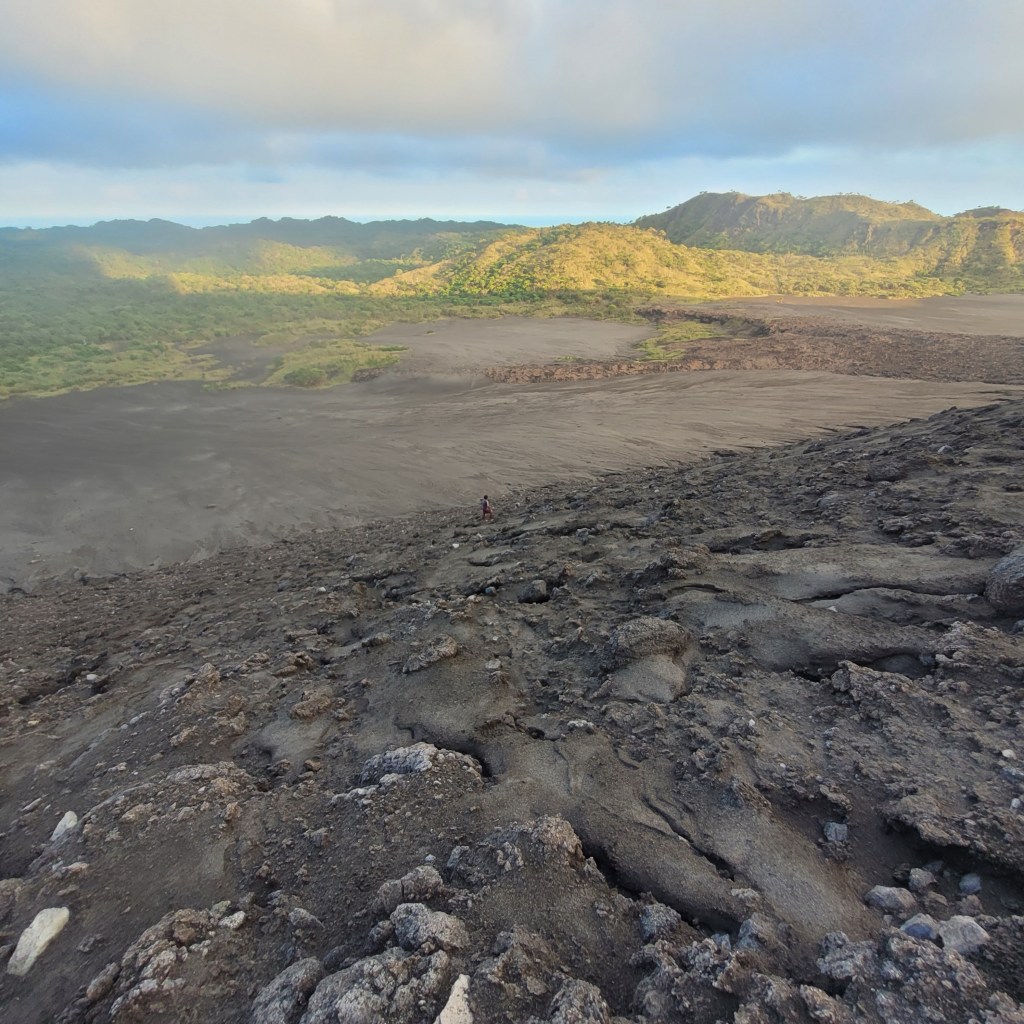 Two villages near the bay disputed access to the volcano, and the resolution was that one village could hike up, but not use the road built by the other village. So scale the mountain it was!