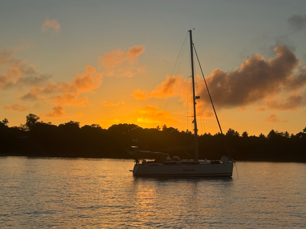 This post is over two months delayed… Always watching the weather, along with other cruisers, we saw a departure window and had previously arranged for immigration to make the three hour journey to clear us in Port Resolution at our collective expense. The day after our volcano adventure, we met with immigration to obtain clearance to depart the country for New Zealand, which is typically a seven to nine day sail. Other cruisers were leaving for New Caledonia, which is a shorter sail and one arrived from Fiji. Because of biosecurity requirements, along with donations of food to the villages, cruisers exchanged excess bananas, cheese and pamplemousse (grapefruit). The cruisers arriving were grateful to buy our excess currency so they could pay immigration and customs fees. Even the exit process brings fond memories.